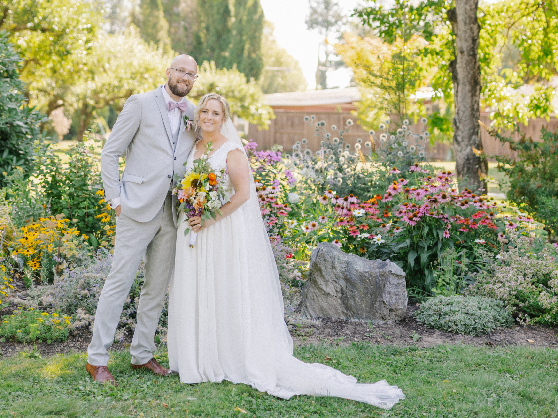 A beautiful August wedding at St Mary’s Catholic Church in Chilliwack with a wildflower inspired reception on a Christmas tree farm.